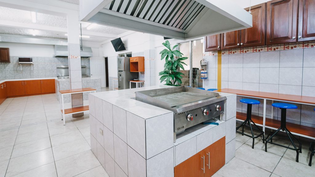 Salones de clases dotados de proyectores digitales, 5 salones audiovisuales, cafetería, biblioteca, clínica de primeros auxilios, laboratorios de Física, Química, Biología, Chef, tres canchas polideportivas techadas, parqueos, oficinas administrativas, área de juegos, 3 laboratorios de computación, dos salones de actos multipropósito, patios de recreo.
